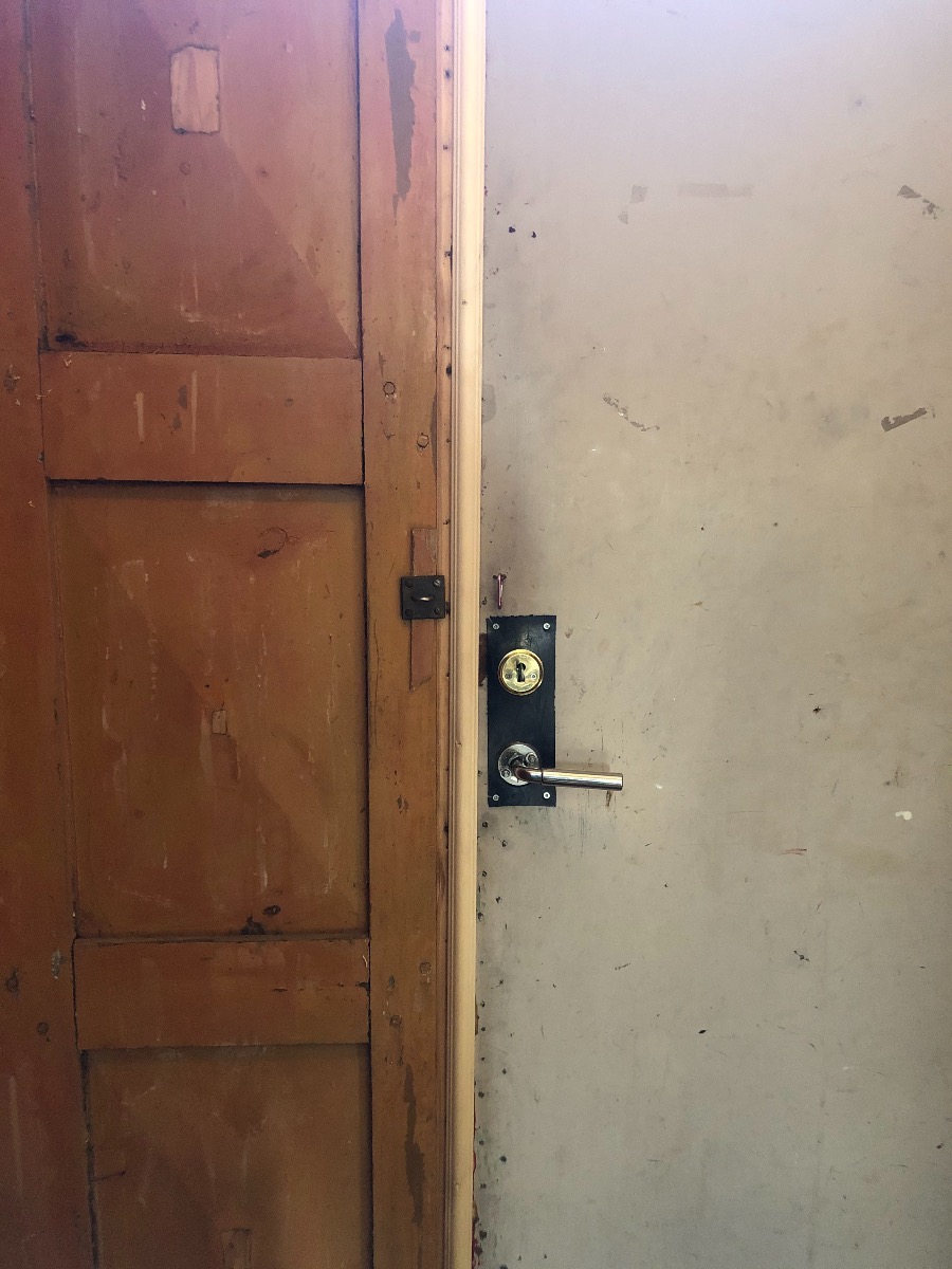 I huset från 1800-talet som vi köpte för ett år sedan finns det tre stycken ytterdörrar. Vi har fin värme i huset men den här glipan har gäckat oss under en hel vinter och jag har nu för avsikt att täta den så att vi slipper iskall luft som drar rakt in i groventré, kammare och kök. Nya dubbeldörrar har redan lister som tätar mellan dörrbladen på in och utsida, men det hade, som ni ser alltså inte den här gamla dörren.